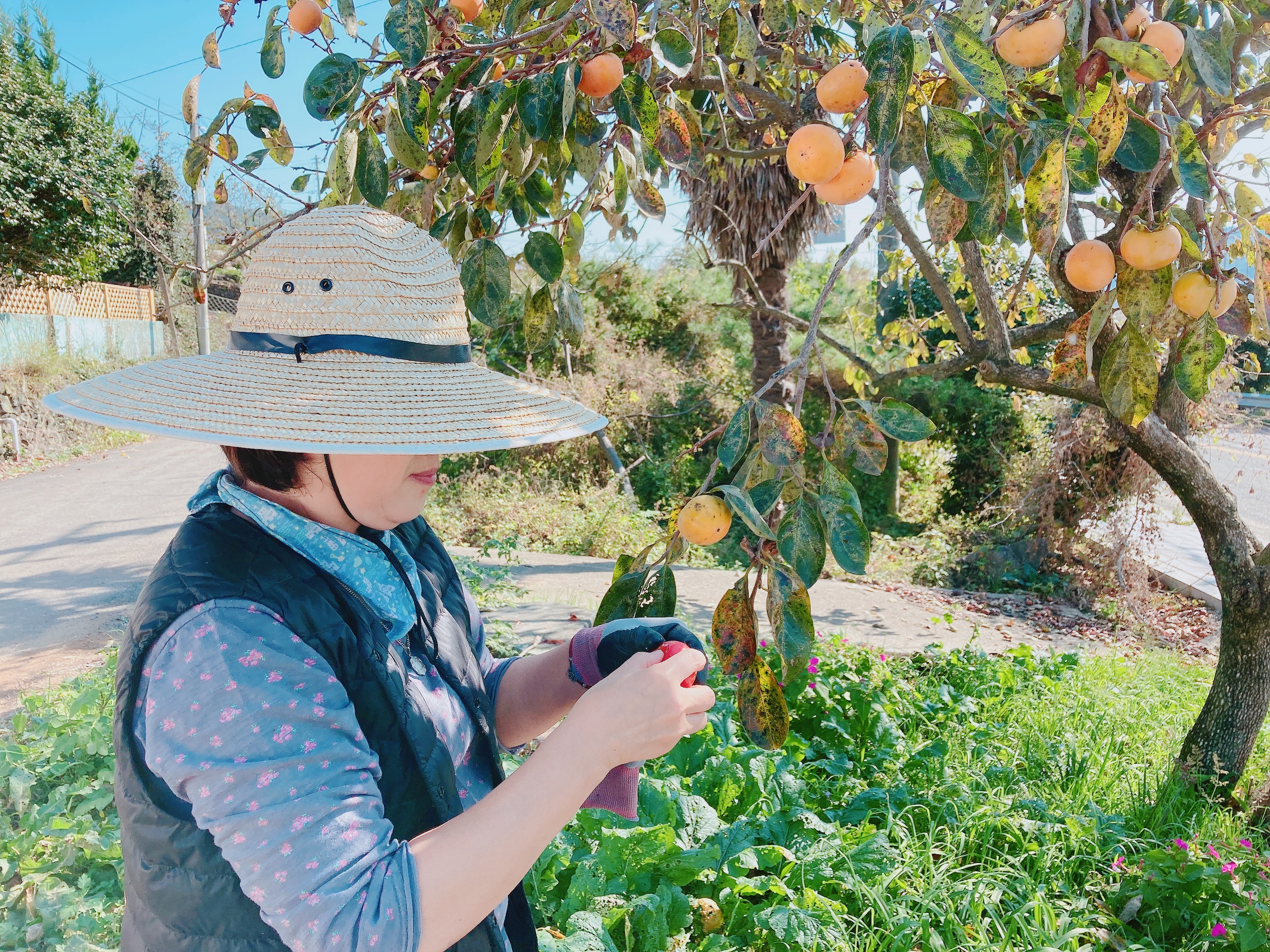 잘 익은 감하나를 따더니