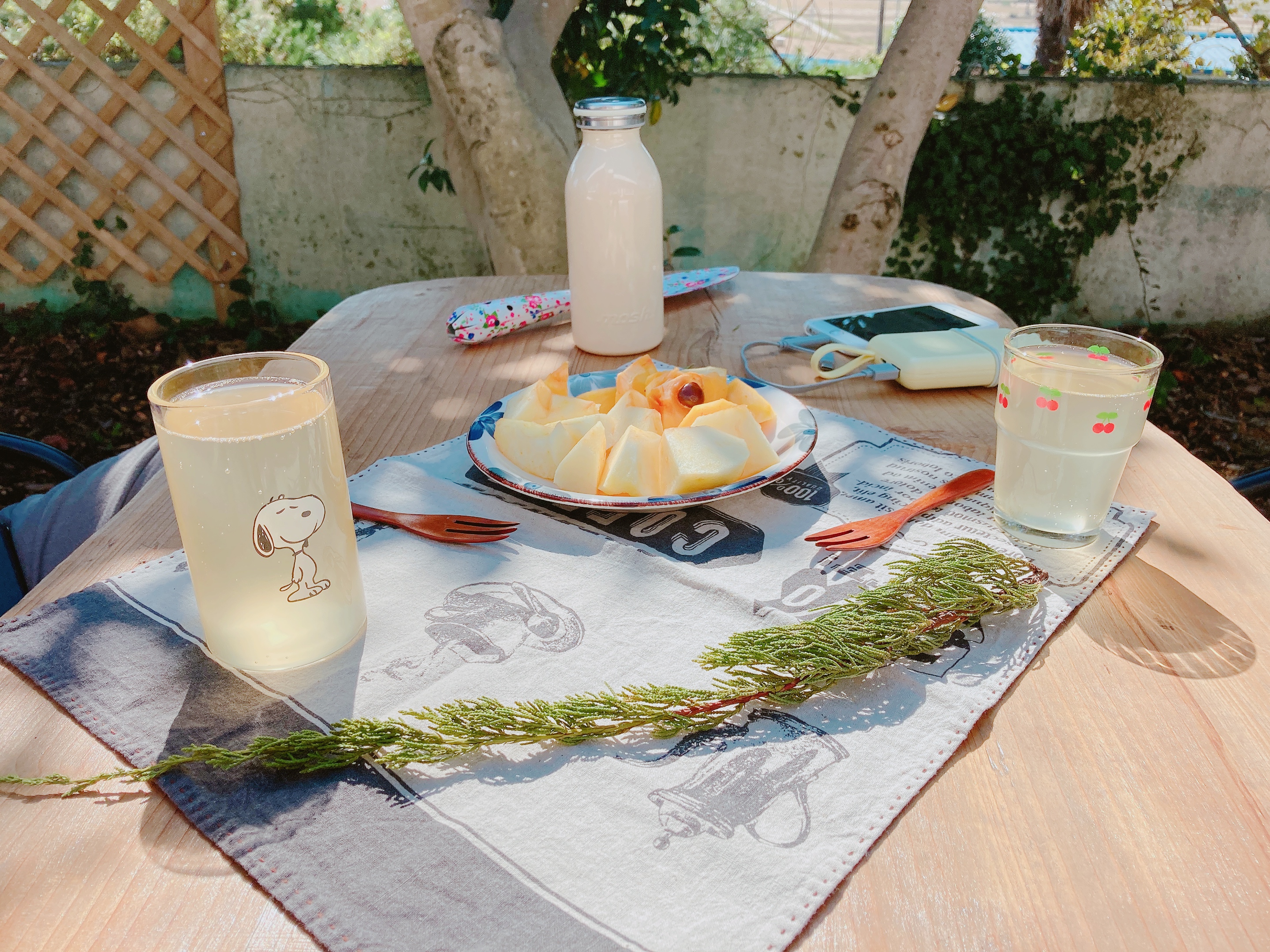 마당의 향이, 동백이, 목련이 나무그늘에서