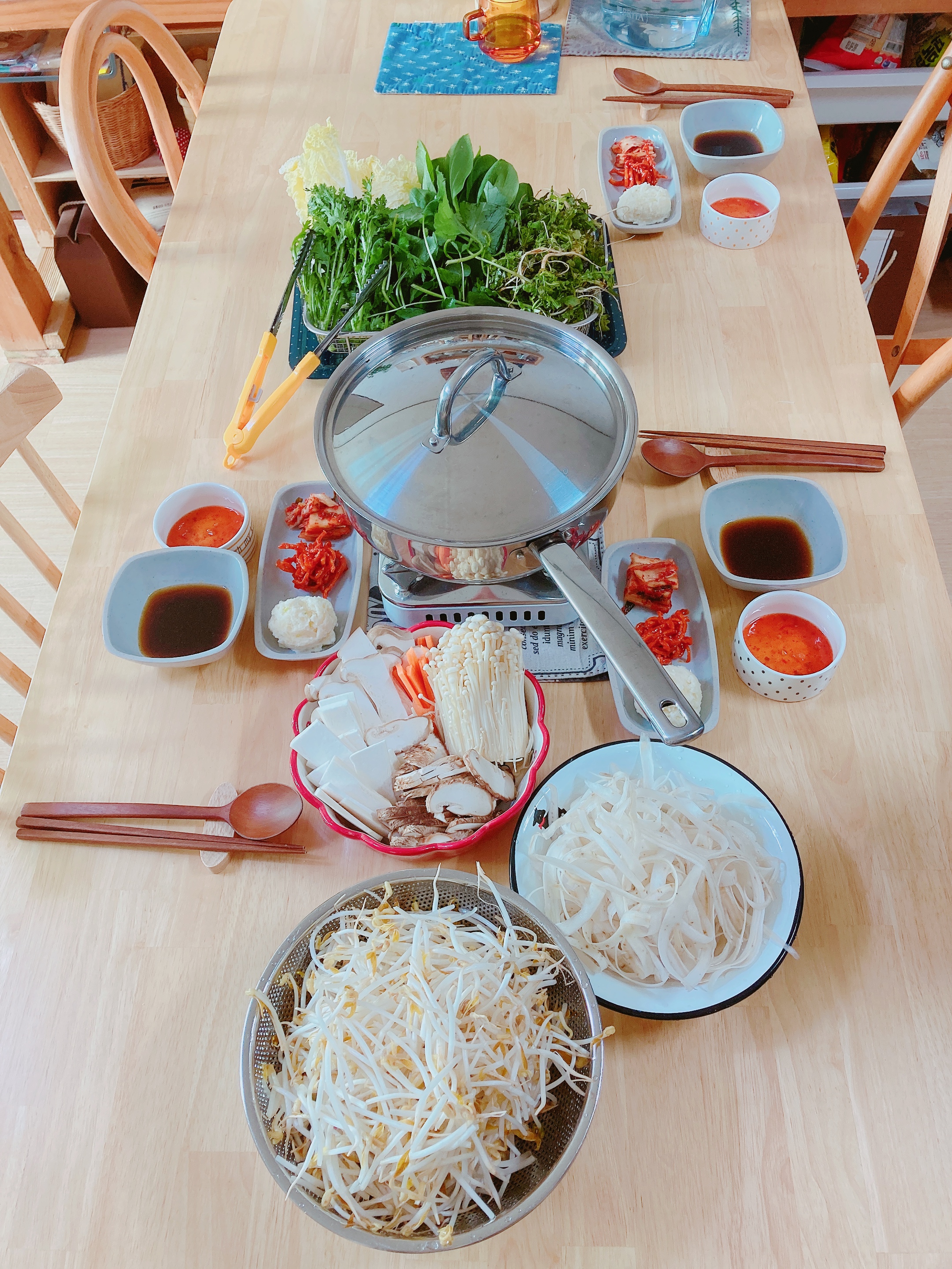 준비한 재료들을 뜨거운 육수에 익혀