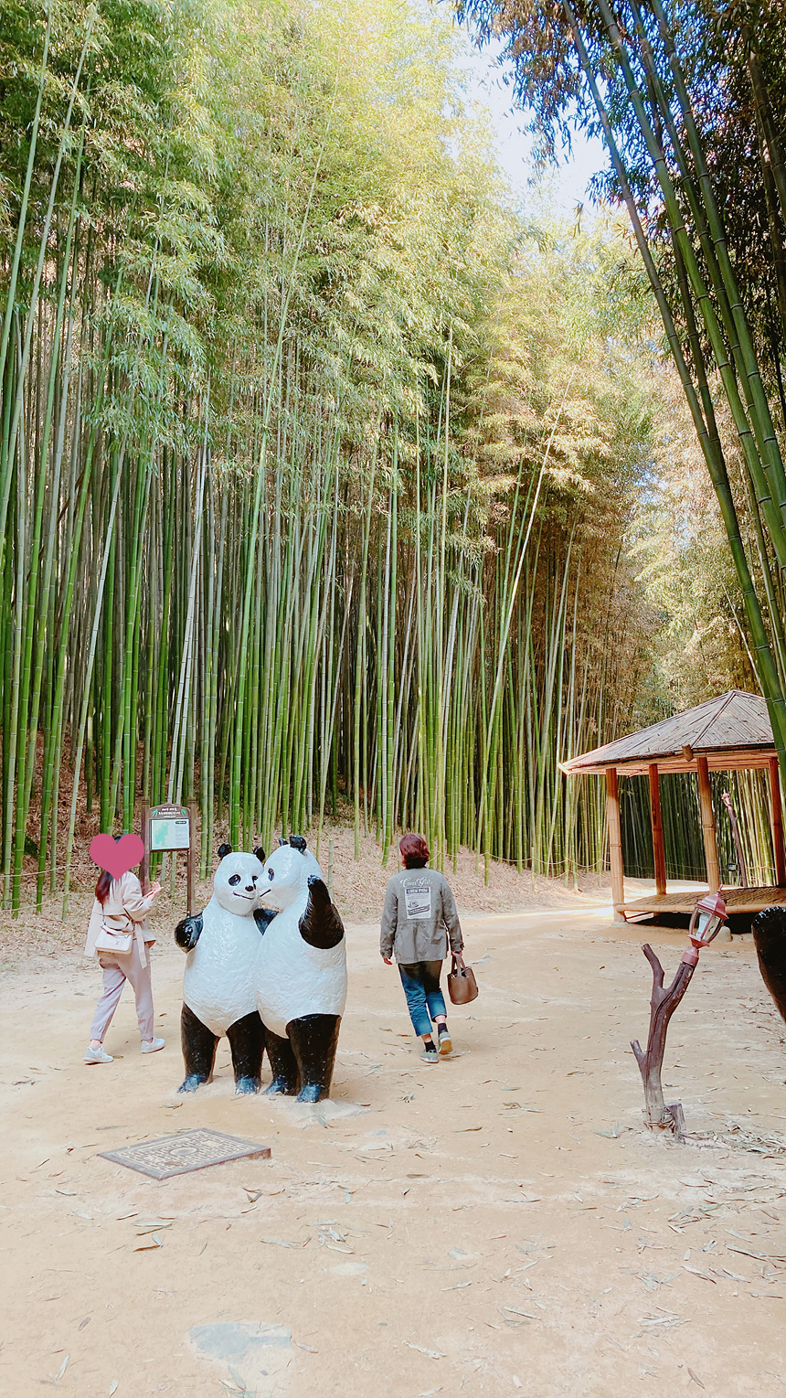 대나무 하면 판다인가요? ^^ 죽림폭포에서 귀여운 판다들이 놀고 있습니다.