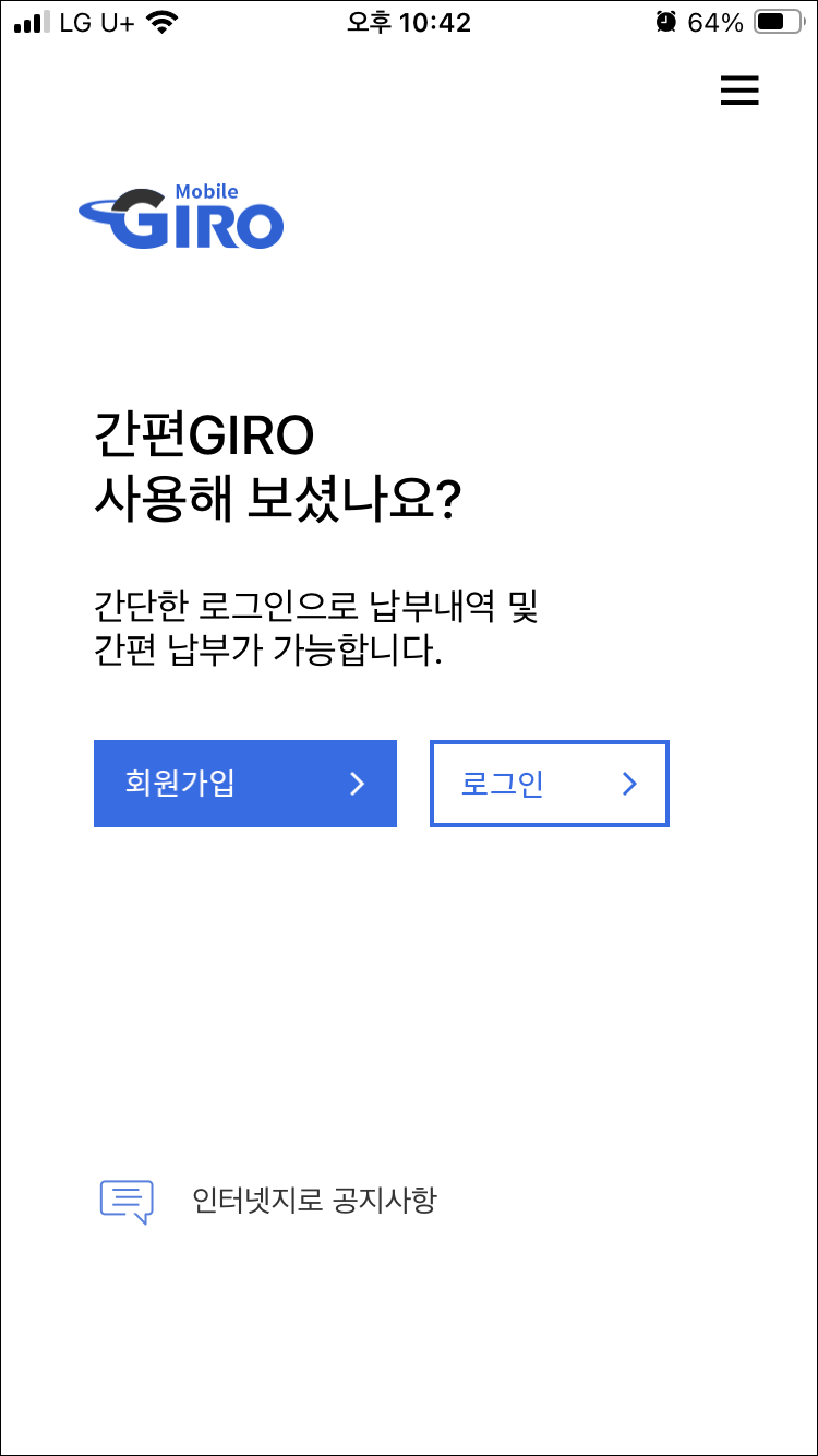 모바일 지로를 사용하니 인터넷 지로보다 조금 더 편리한 느낌입니다.