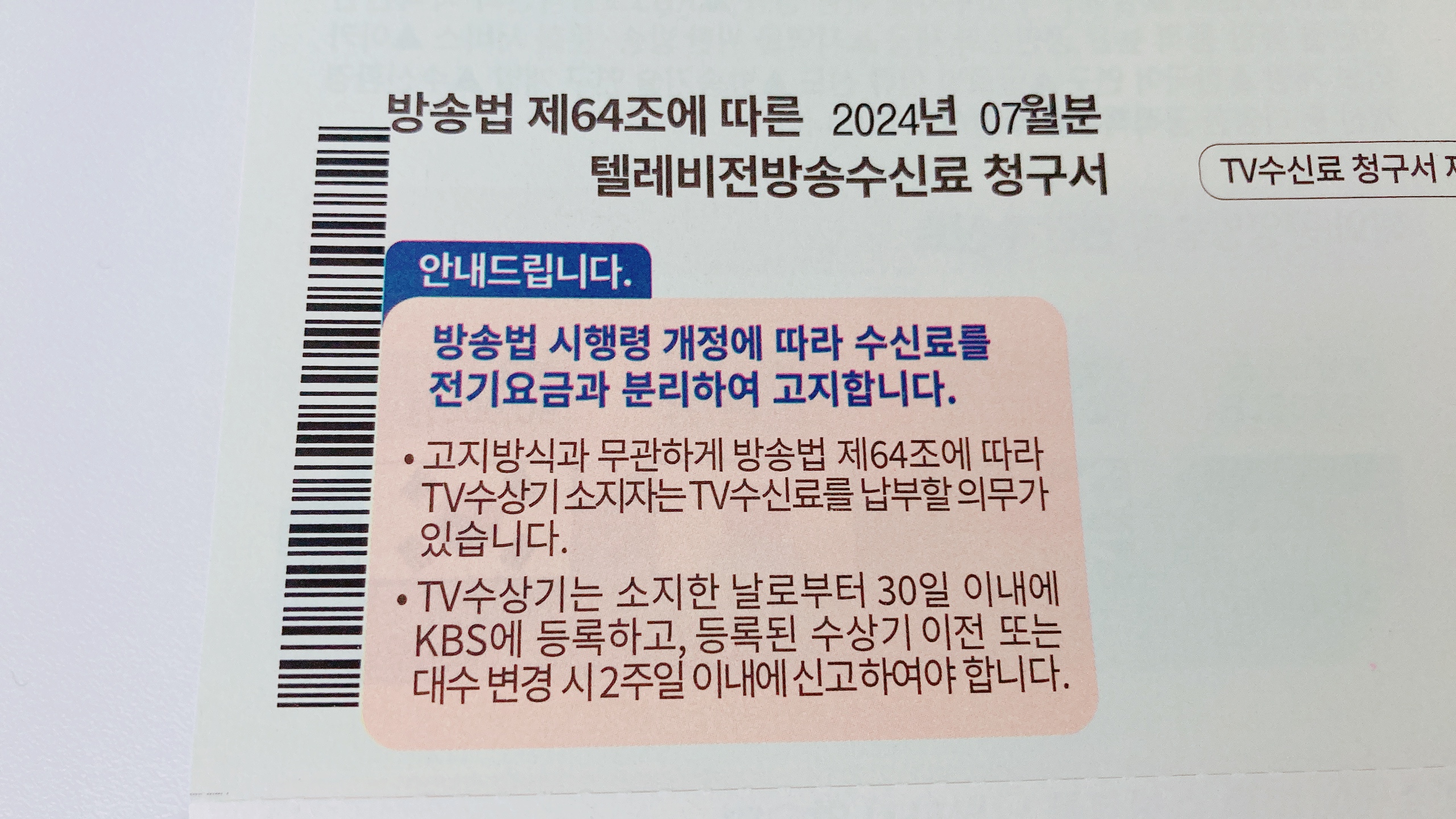 그렇게 그동안 한전에 꼽사리 껴서 받아먹던 수신료를 올해부터는 한전에서 분리하여 KBS에서 자체적으로 징수를 한다고 합니다.