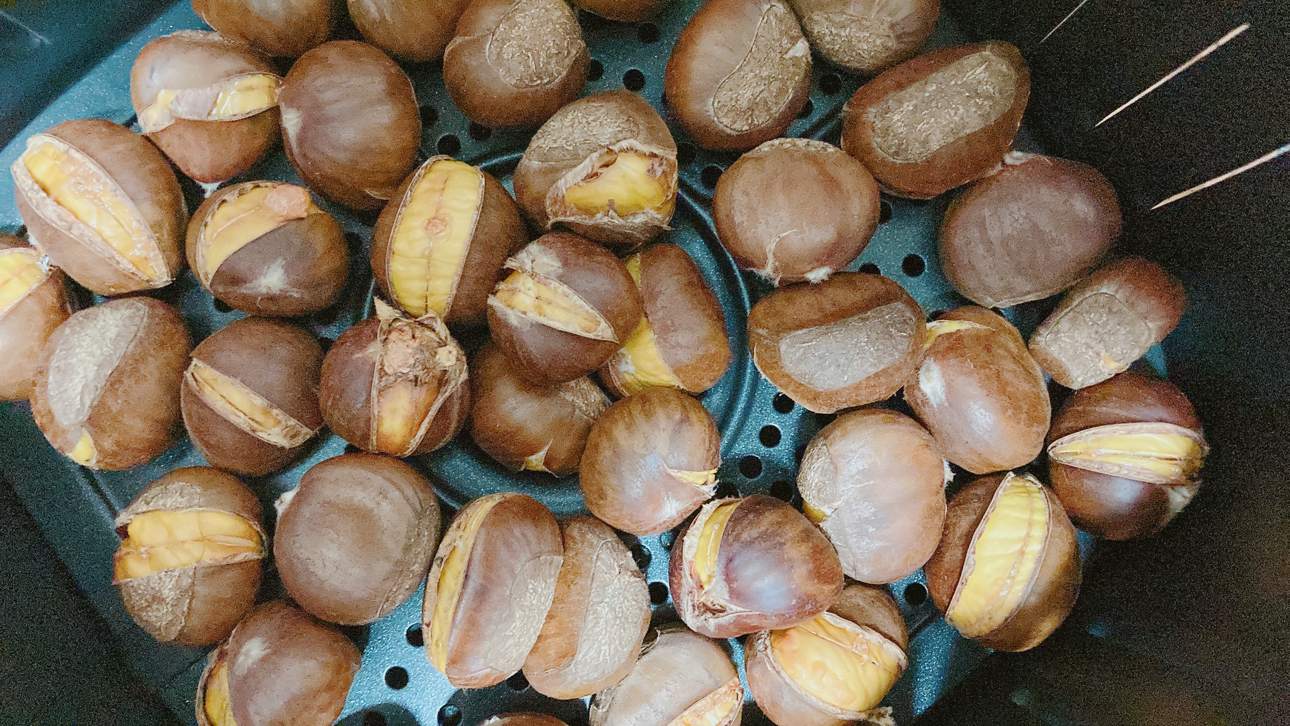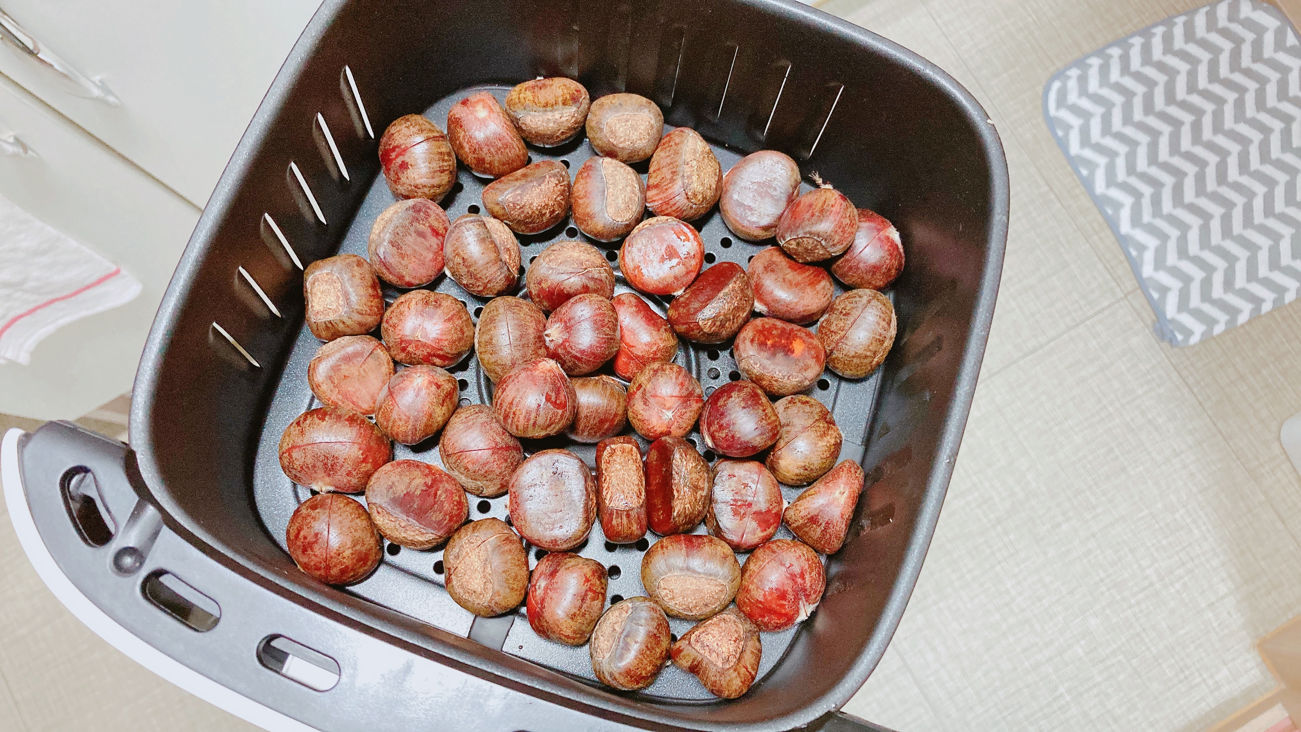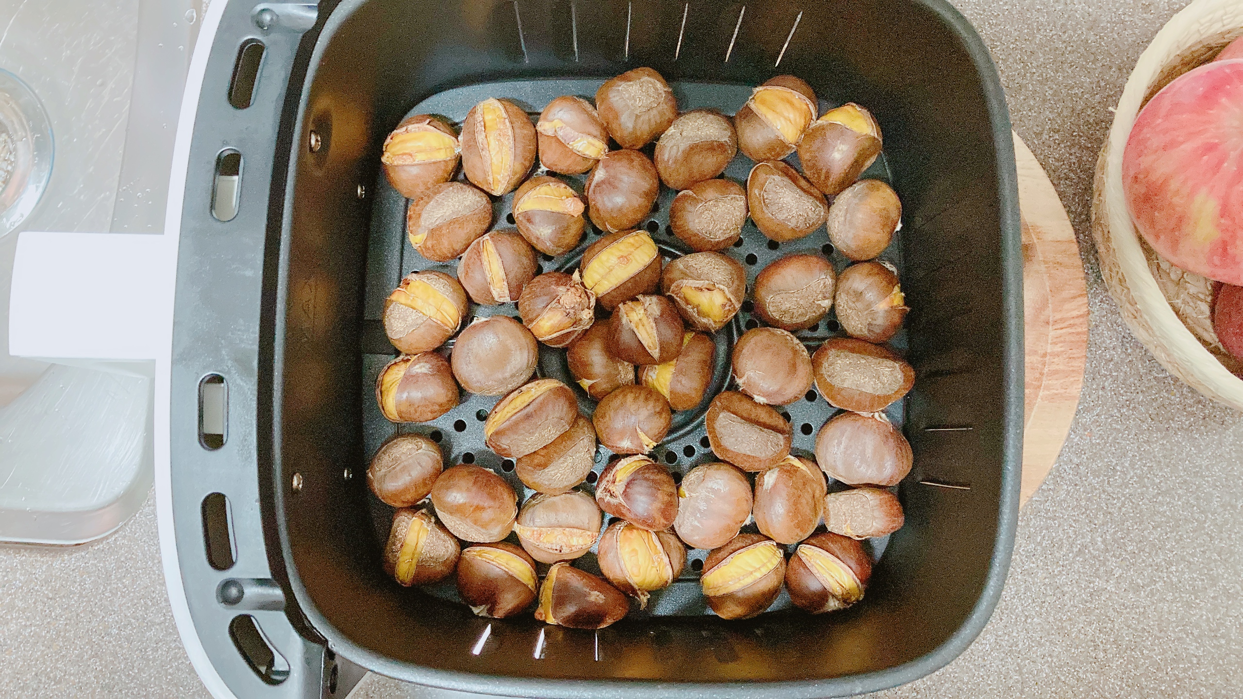 약단밤 약 500g을 에어프라이어 온도 180도에서 15분간 구워줍니다.